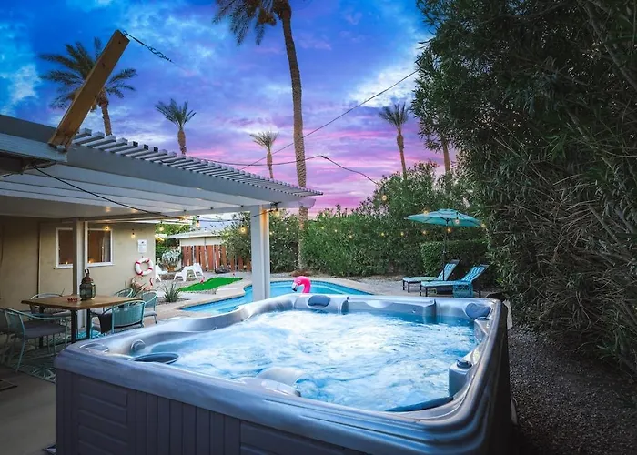 Saltwater Pool - Hottub - Games - Good Vibes Only! Villa Indio is located a 19-minute walk from the Indio Fashion Mall Shopping Center and provides a private pool, ensuring a relaxing stay. This villa offers guests a relaxing experience with a hot tub.